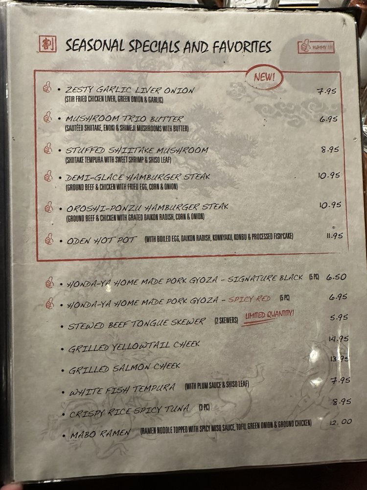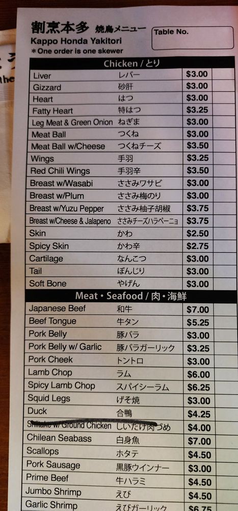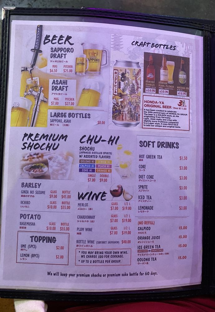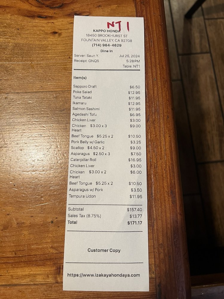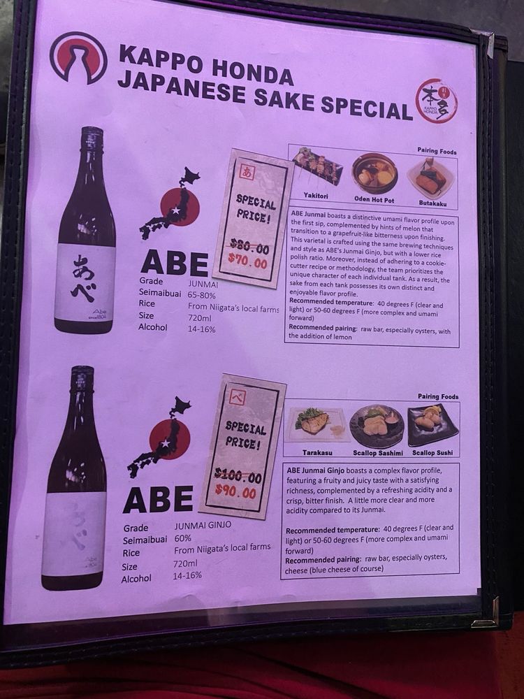 At Kappo Honda, located in Fountain Valley, CA, you can expect a casual and welcoming ambiance with a focus on Japanese cuisine. This Asian-owned restaurant offers a variety of dishes, including skewers, sushi, and udon noodles. Customers rave about the authentic flavors and freshly prepared meals, with standout dishes like NasuMiso and pork belly skewers. The service is attentive, though some have noted occasional lapses in friendliness. While prices can be on the higher side, the quality of the food makes it worth the cost. Overall, Kappo Honda is a great spot for a night out with friends, offering delicious food in a cozy setting.